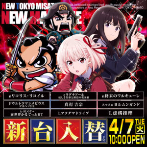 Previous Next アセット 8 アセット 4 アセット 12 アセット 23 4/7(火):新台入替(予定) 2026年3月31日 続きを読む » 4/6(月):1円パチンコ&5円スロットに新登場 2026年3月30日 続きを読む » 3/17(火):新台入替 2026年3月17日 続きを読む » 台データ情報 / Data informationn ニュートーキョー三郷店 営業時間 10:00 〜 22:45 台数 4円パチンコ 160台 1円パチンコ 160台20円+スロット 192台 5円+スロット 48台 定休日 年中無休 住所 長野県安曇野市三郷温2714-1 Google mapで開く サービス情報 快適空間のご案内はコチラ 設置機種 / Machine information■■P-WORLD機種情報からご確認下さい■■ パチンコ スロット サービス案内 / Service information